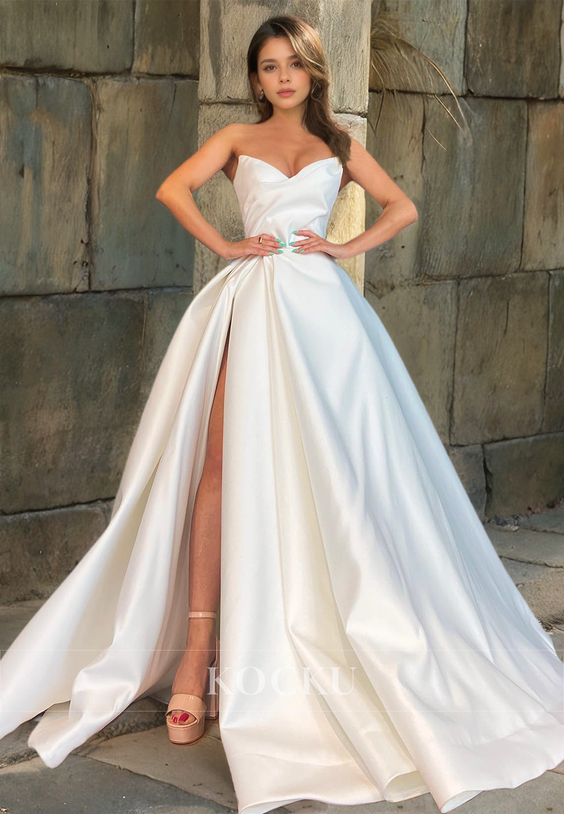 Elevate your formal look with our A-Line Sweetheart Sleeveless Formal Gowns. Crafted from high-quality satin, this dress features a sweetheart neckline, pleated detailing, and a dramatic high split. The sweeping train adds a touch of elegance. Perfect for prom or any special occasion.