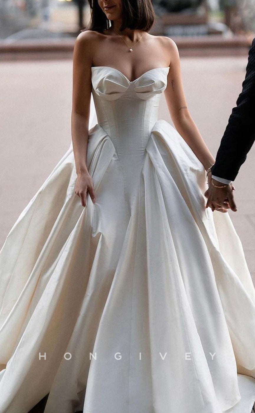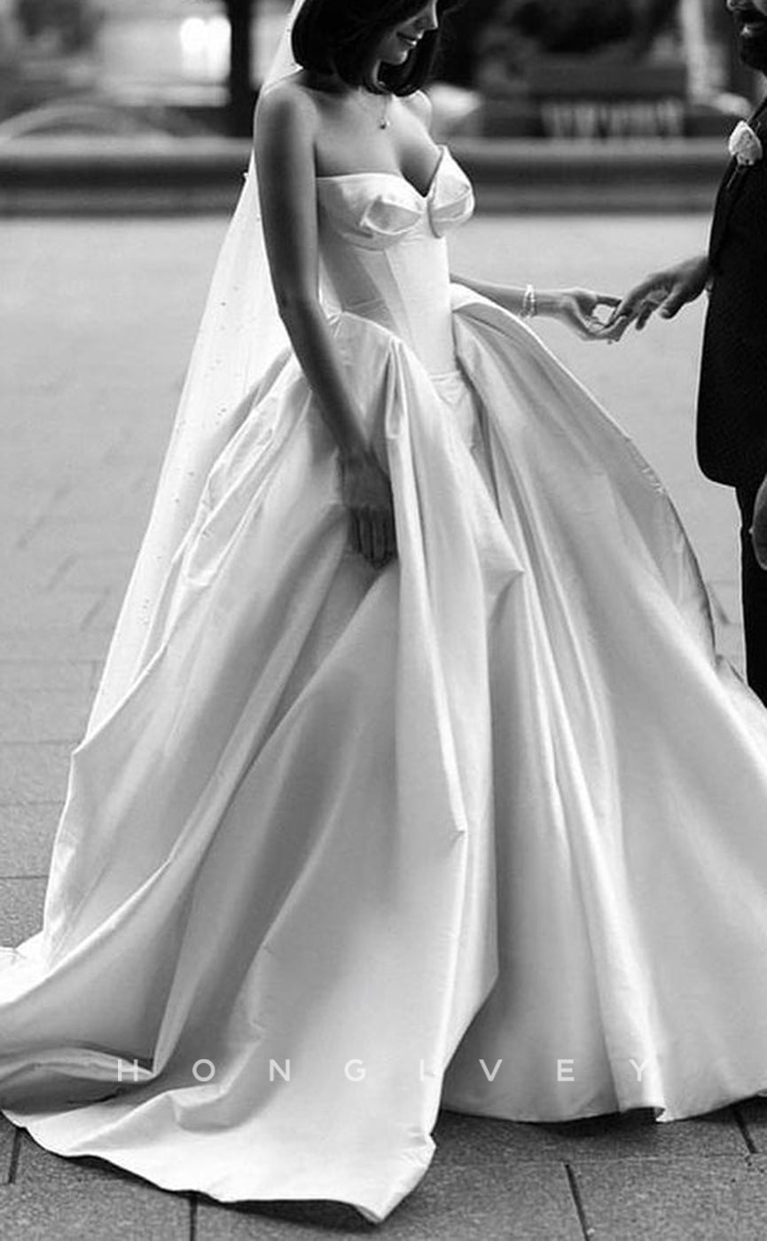 H1194 - Chic Satin A-Line Sweetheart Sleeveless Empire With Train Wedding Dress