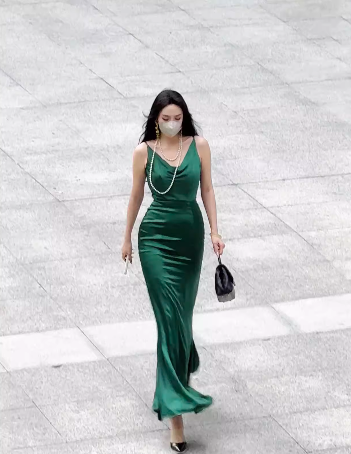 Vintage Sheath Spaghetti Straps Green Vacation Dress Satin Birthday Dresses SD0020